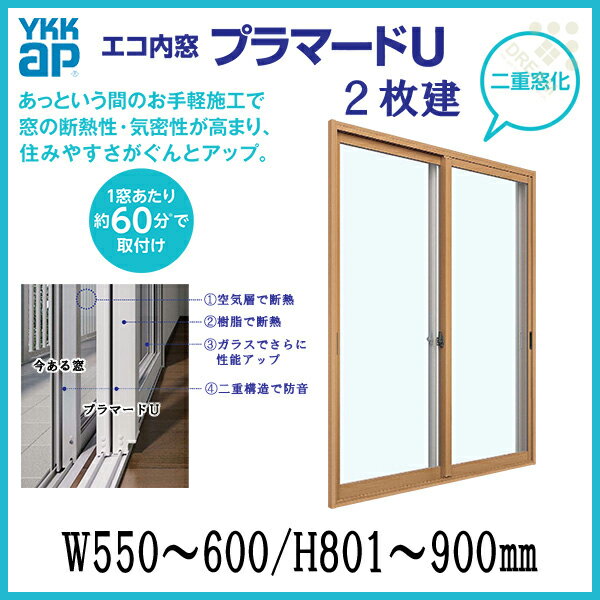 [スマホエントリーでポイント10倍 5/25 10:00-6/1 9:59]二重窓 内窓 プラマードU YKKAP 偏芯2枚建(単板ガラス) 透明3mmガラス W701〜800 H1601〜1700mm 各障子のWサイズをご指定下さい YKK サッシ