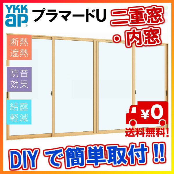 二重窓 内窓 YKK プラマードU 4枚建 引き違い窓 複層ガラス 透明3mm+A12+3mm/型4mm+A11+3mm W幅2001〜3000 H高さ1801〜2200mm 引違い窓 サッシ リフォーム DIY