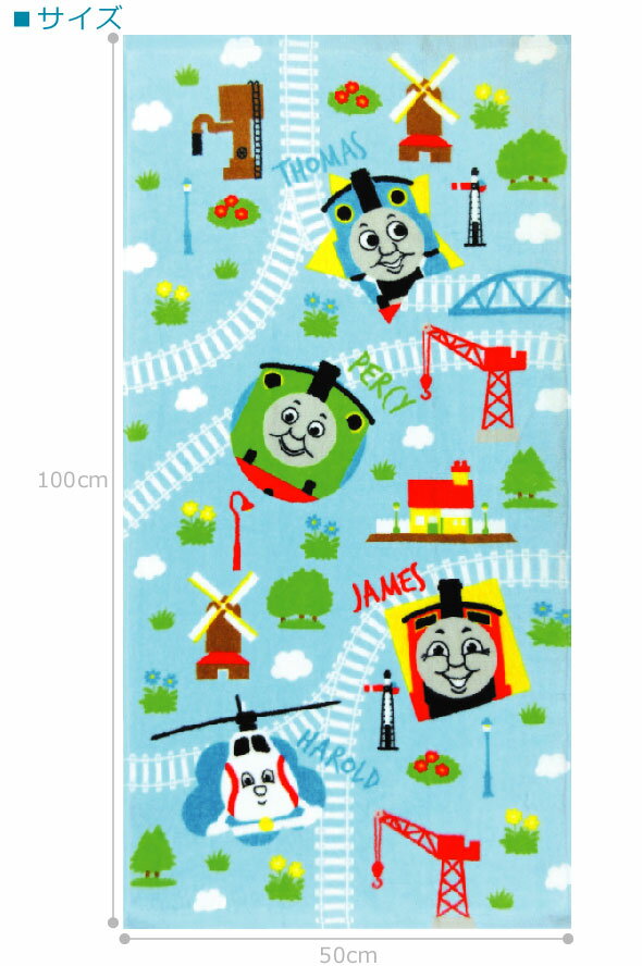 【メール便OK】■きかんしゃトーマス・コンパクトバスタオル(線路)【50×100cm】■☆キャラクタータオル☆トーマスがプリントされた可愛いタオル