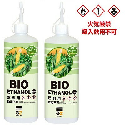 ガレージ・ゼロ バイオエタノール 発酵アルコール89.9% 480ml×2個(燃料用エタノール/燃料用アルコール/アルコール燃料/アルコールランプ 燃料)
