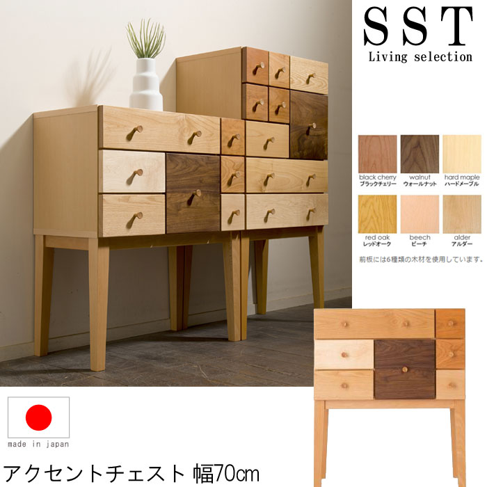 アクセントチェスト 幅70cm ブラックチェリー ウォールナット ハードメープル レッドオーク ビーチ アルダー 国産品 日本製 無垢 天然木 サイドキャビネット リビング用 リビングボード 引出収納 北欧 収納家具 引き出し 整理 送料無料 GMK-hako
