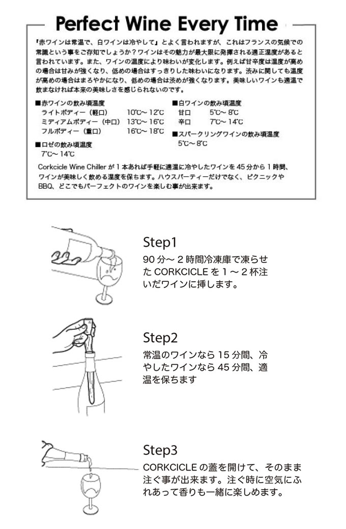 商品詳細商品名corkcicle one ワインチラー wine chiller 保冷 サーブ品番:5063ポイントステンレス製のつらら部分とシリコン製のキャップの本格的なプロ仕様。