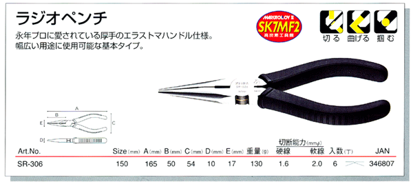 KEIBA SR-306 スムースローテーション ラジオペンチ 150mm ケイバ マルト長谷川工作所