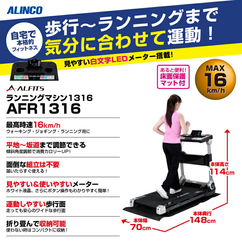 60時間限定タイムセール/2日21時〜5日9時までアルインコ直営店 ALINCO基本送料無料AFR1316 ランニングマシン1316ランニングマシン ウォーカー ルームランナー健康器具