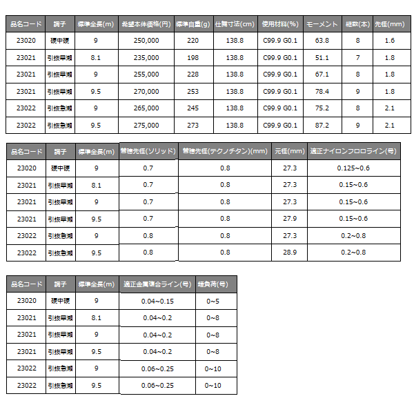 この考えを前提に、各々の調子に応じた環境でテストを繰り返し、それぞれの釣りに対して必要な性能を徹底的に強化。